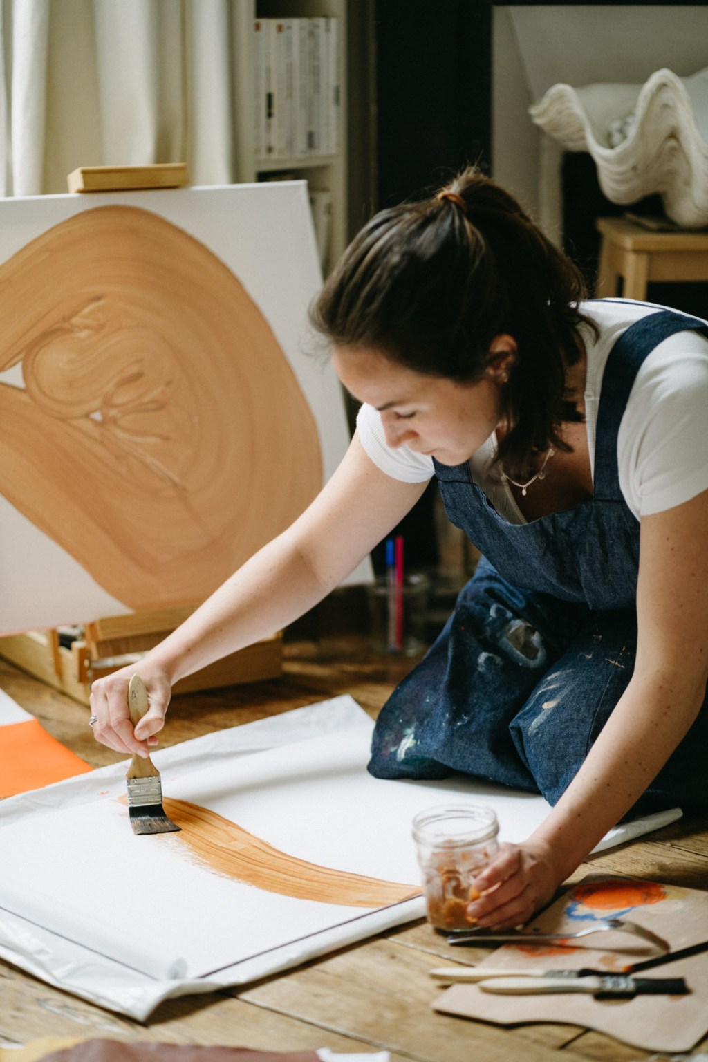 Artiste, styliste et graphiste, j’ai par le passé co-fondé une marque de mode éco-responsable. Attachée au beau et à l’amour de la nature, je me replonge dans la peinture en 2020, chamboulée par ma grossesse et les transformations du corps. Depuis impossible de faire marche arrière, c’est en tant qu’artiste que je choisis de continuer à mettre du sens au cœur de ma démarche. Revenue à Tahiti en 2021, j’expérimente avec des encres naturelles que je fabrique moi-même à partir de matières organiques, de fleurs et de feuilles locales.
