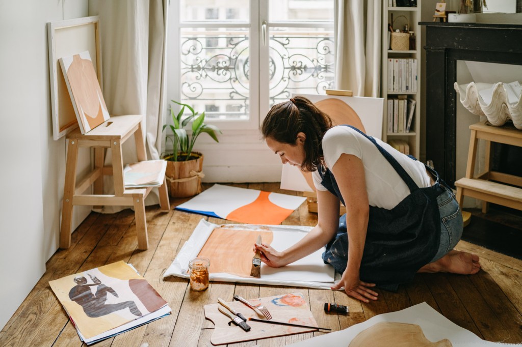 Le corps humain m’inspire et les coups de pinceaux donnent naissance à des courbes minimalistes et sensuelles. La peinture et le dessin peuvent également être une piste pour votre identité visuelle !
